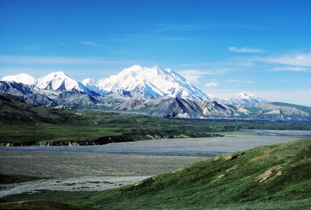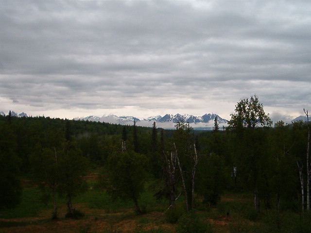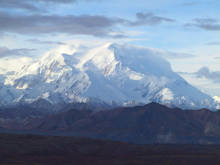 Denali is another name for Mount McKinley, which is a source of great confusion for everybody until they figure that out. But no matter what you call it, we couldn't see it. Denali is so tall at 20,320 feet that it "makes it's own weather", and it was constantly hidden by clouds. At this time of year, it's only visible once or twice a week and then only for a short period and not very clear. The best time to see the mountain is in the winter. But here's what it looks like: