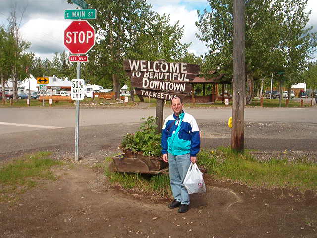 We bought some stuff from the gift shop, and then took a one-hour bus ride to Talkeetna. Talkeetna is about 50 miles from the base of Denali, and is the jumping-off point for all hiking expeditions up Denali. The mountain rises up from a glacier, and the original hiking path went across the glacier and up the mountain. These days most people take a plane with skids that can land on the ice, then hike up the mountain. Talkeetna is very small (we walked from one end to the other in about ten minutes at a leisurely pace), with fewer than 1000 people living there, and is very much a tourist town. There are all sorts of tours from horseback riding to white water rafting to flightseeing. We decided to just take the day to relax in the town.