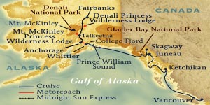 We woke up early, and Mount McKinley was visible! We were now about 120 miles south of the mountain, but it was clearly visible for about an hour. We got on yet another motorcoach and got a mini-tour of Anchorage. There was a good bit of construction, and the driver joked that Alaska has two seasons: winter and road construction. Sounds like Maryland.