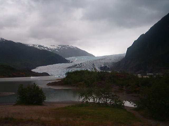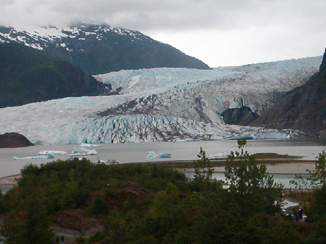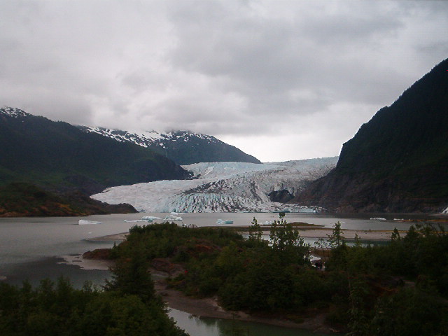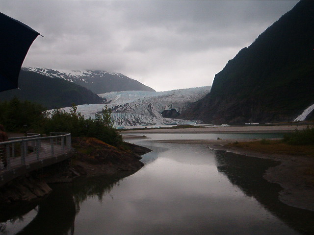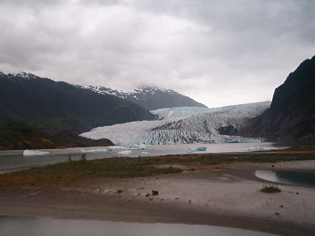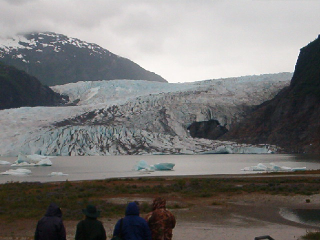 We boarded a bus to the Mendenhall Glacier, a glacier that you can almost walk up to.