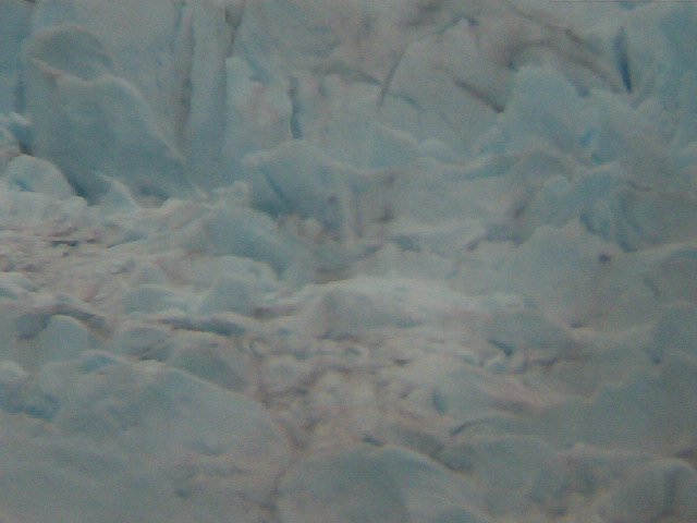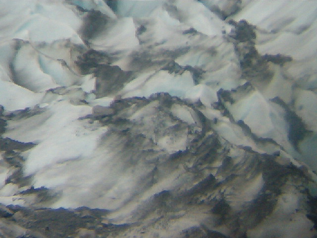 These are magnified pictures of the glacier taken by putting the lens of the digital camera up to a telescope. The glacier appears dirty because of all the rock it has ground up.