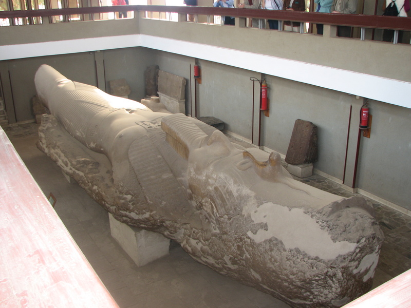 The Colossus of Ramses. This is an enormous limestone statue. It is about 34 ft. long and is unfinished.