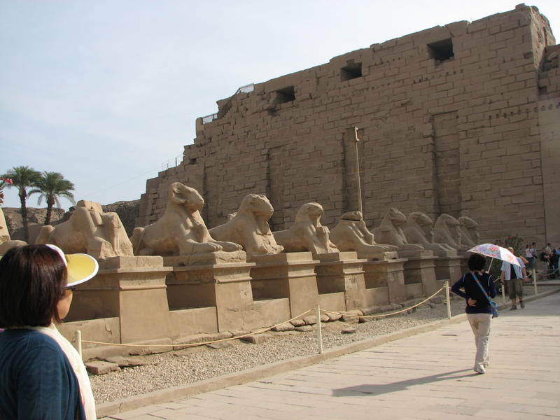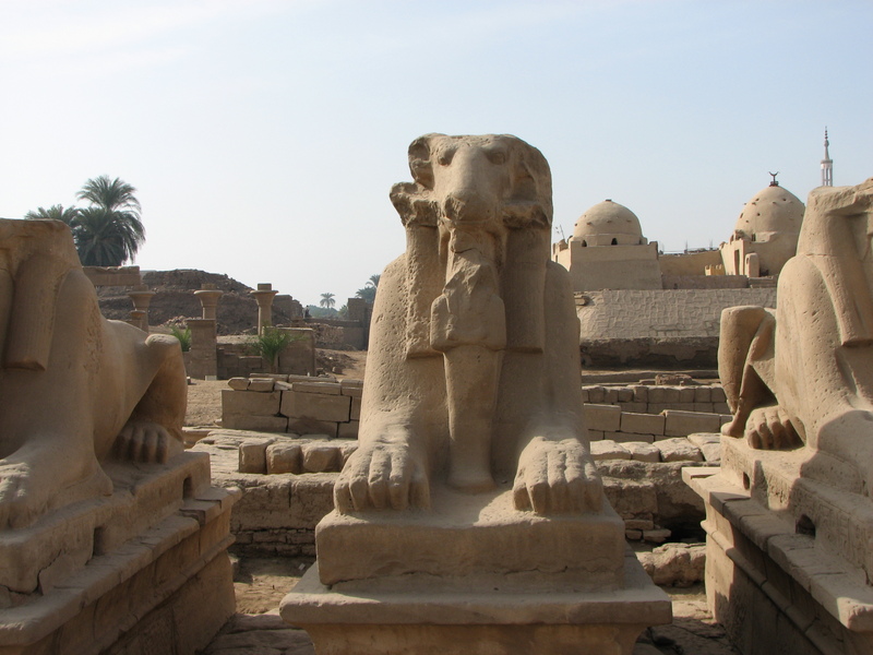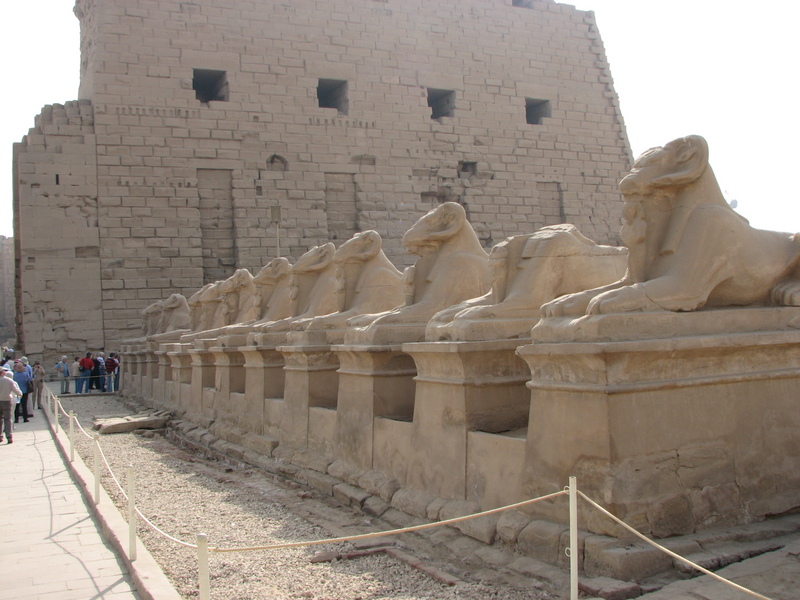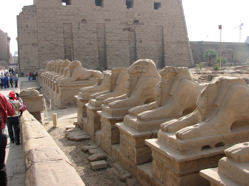 The Avenue of the Sphinxes once connected the Temple of Karnak with the Temple of Luxor. The entire avenue was more than 3 km long, and must have had more than 2000 sphinxes all together. But the sphinxes do not belong to the original cult structure of Luxor. It was built under King Nectanebo 1 in the 4th century, about 1,000 years after the temples it connects.