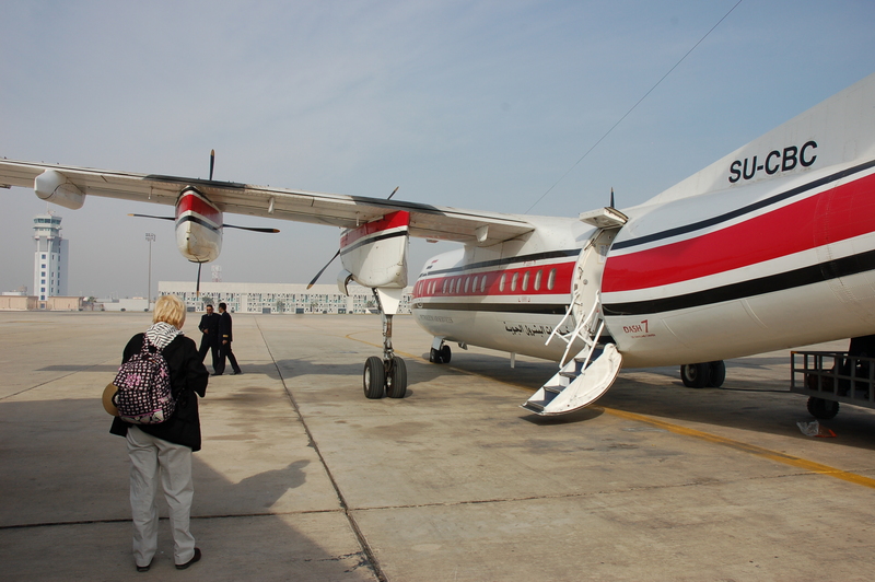 We got to the Cairo airport early, but there were already lines out the door. Part of the reason for this is that they X-ray all luggage and send everyone through a very sensitive metal detector immediately when they enter the airport. They do it all a second time before you can get to your gate. Luckily, we had a private flight and our guides "arranged" for us to skip the lines. We flew to Luxor, the religious capital of ancient Egypt.