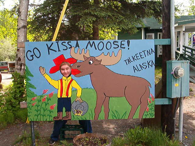 We bought some stuff from the gift shop, and then took a one-hour bus ride to Talkeetna. Talkeetna is about 50 miles from the base of Denali, and is the jumping-off point for all hiking expeditions up Denali. The mountain rises up from a glacier, and the original hiking path went across the glacier and up the mountain. These days most people take a plane with skids that can land on the ice, then hike up the mountain. Talkeetna is very small (we walked from one end to the other in about ten minutes at a leisurely pace), with fewer than 1000 people living there, and is very much a tourist town. There are all sorts of tours from horseback riding to white water rafting to flightseeing. We decided to just take the day to relax in the town.