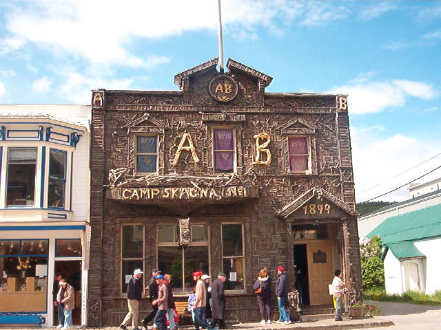 Camp Skagway is supposedly the most photographed building in Alaska. This driftwood-decorated frame building was the home of a fraternal group founded by gold seekers on their way to the Klondike. The building was erected in 1899, and the facade was put up the next year.