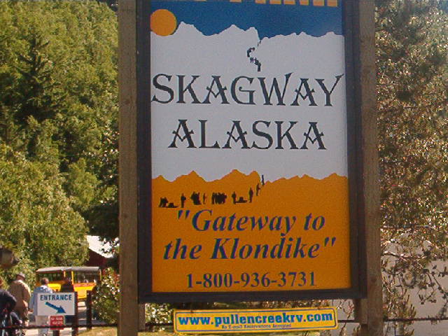 The ship docked in Skagway early in the morning. Skagway was once known as the gateway to the gold fields. Over a hundred years ago, the White Pass route through the Coast Mountains and the shorter but steeper Chilkoot Trail were used by countless gold seekers. Many died in the harsh elements trying to climb the Chilkoot Trail. The Canadian authorities would not let anyone into the Yukon without a year's worth of supplies, so folks would have to make up to 40 fully loaded trips up this steep trail to haul of their supplies.