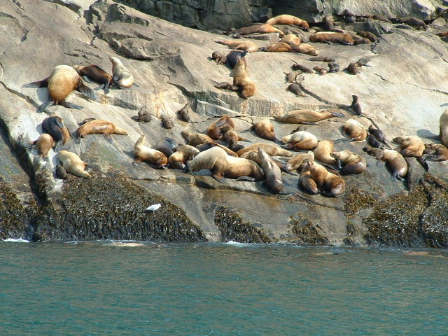 We also saw about two or three dozen Steller sea lions sunning themselves on some rocks.