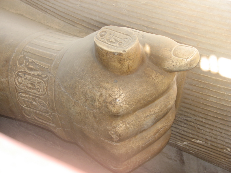 The Colossus of Ramses. This is an enormous limestone statue. It is about 34 ft. long and is unfinished.