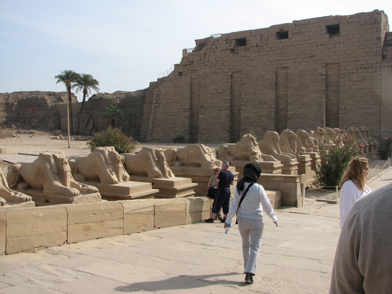 The Avenue of the Sphinxes once connected the Temple of Karnak with the Temple of Luxor. The entire avenue was more than 3 km long, and must have had more than 2000 sphinxes all together. But the sphinxes do not belong to the original cult structure of Luxor. It was built under King Nectanebo 1 in the 4th century, about 1,000 years after the temples it connects.