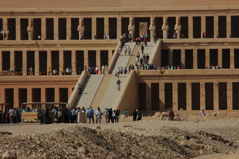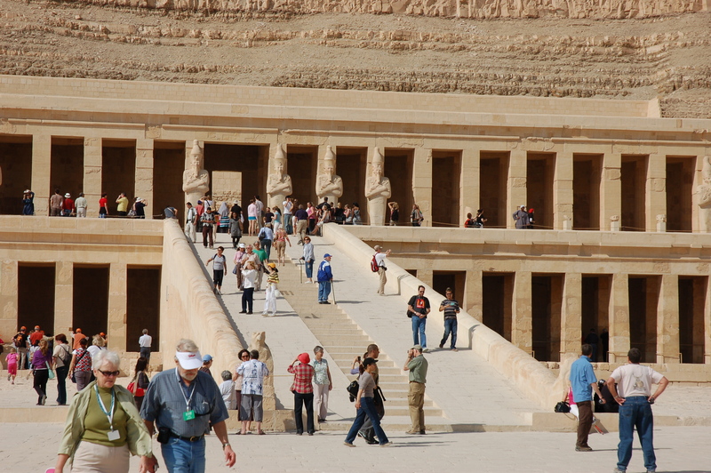 Our next destination was the Temple of Queen Hatshepsut. It is built into the rock and consists of three terraces, with the temple itself located on the top terrace. We were running out of time, as our boat was going to leave without us if we didn't get back when it was scheduled to depart. We moved as quickly as we could but didn't have more than about 10 minutes or so to spend here.