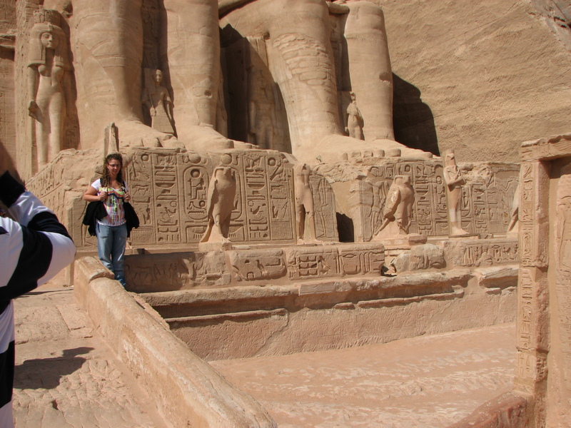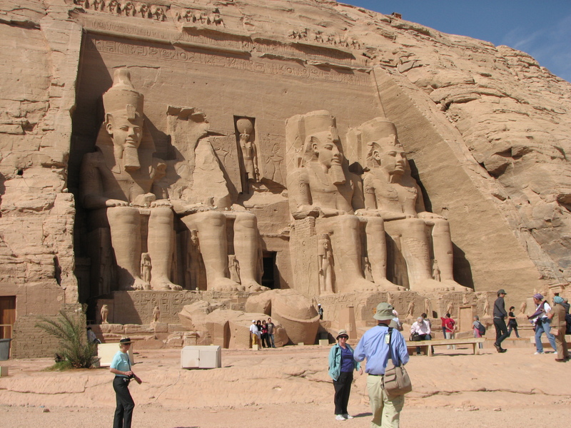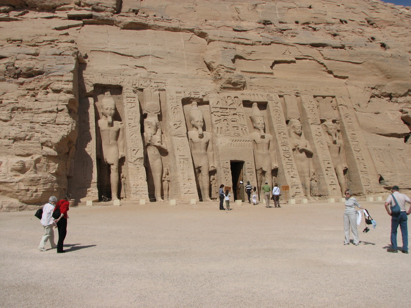 We landed in Abu Simbel and went to see the two temples there. Not only are the two temples at Abu Simbel among the most magnificent monuments in the world but their removal and reconstruction was an historic event in itself. When the temples were threatened by submersion in Lake Nasser due to the construction of the High Dam, the Egyptian Government secured the support of UNESCO and launched a world wide appeal. During the salvage operation which began in 1964 and continued until 1968, the two temples were dismantled and raised over 60 meters up the sandstone cliff where they had been built more than 3,000 years before. Here they were reassembled, in the exact same relationship to each other and the sun, and covered with an artificial mountain.